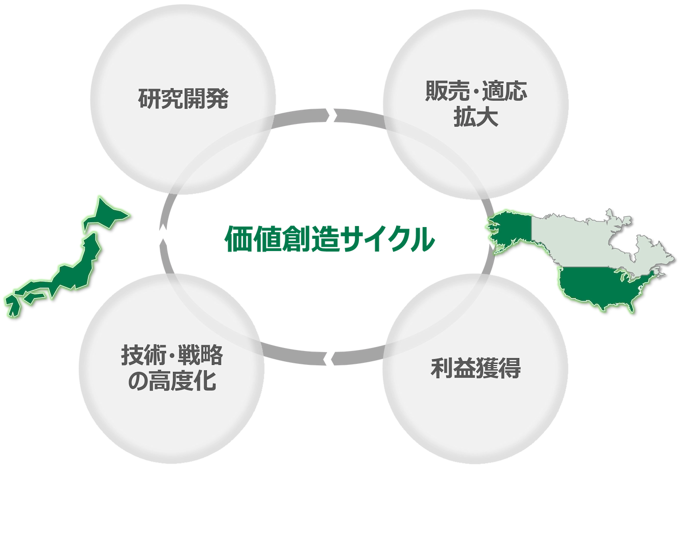 サイクルの循環を通じて戦略的に強みを深化・拡張し、グローバルに独自のポジションを確立する