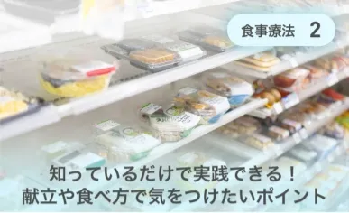 簡単に実践できることから、ちょっと準備が必要なものまで。毎日の生活に取り入れたい食事療法や運動療法をご紹介します。