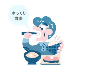 食事自体をゆっくり(少なくとも20分以上目安)摂ることで、血糖がゆっくり上昇します。