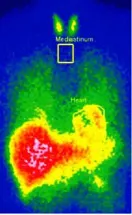 MIBG心筋シンチグラフィーは、MIBGという物質を注射して心臓の交感神経の働きを画像で調べています。パーキンソン病の患者さんでは、MIBGの心筋へのとりこみが低下していることが知られており、その様子を観察します。