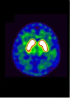 の働きに関係するドパミントランスポーター(DAT)を画像で調べています。パーキンソン病の患者さんでは、ドパミントランスポーター(DAT)が少なかったり、左右で非対称になっていたりします。
