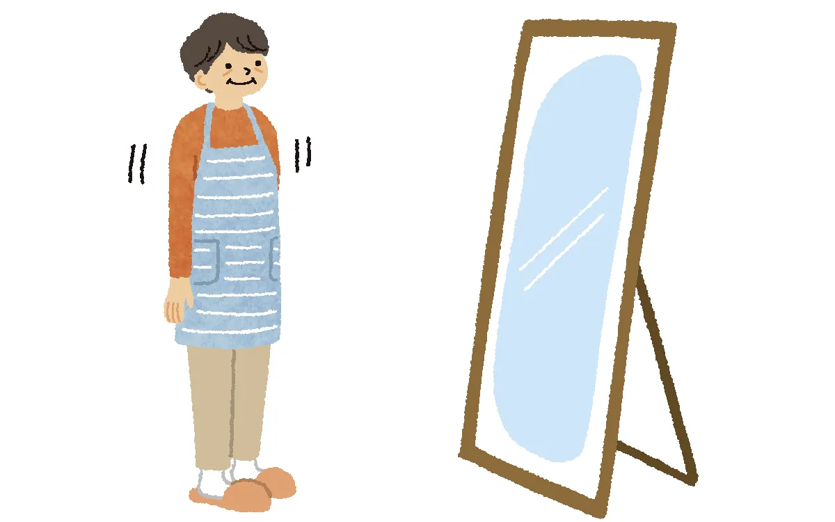 キッチンから見える場所に姿見(鏡)を置くほか、家具などに自分の姿が映るガラス扉などがあれば、それを利用するのもよいでしょう。また、柱や窓枠などの垂直なものを目印にして姿勢を修正する方法もあります。