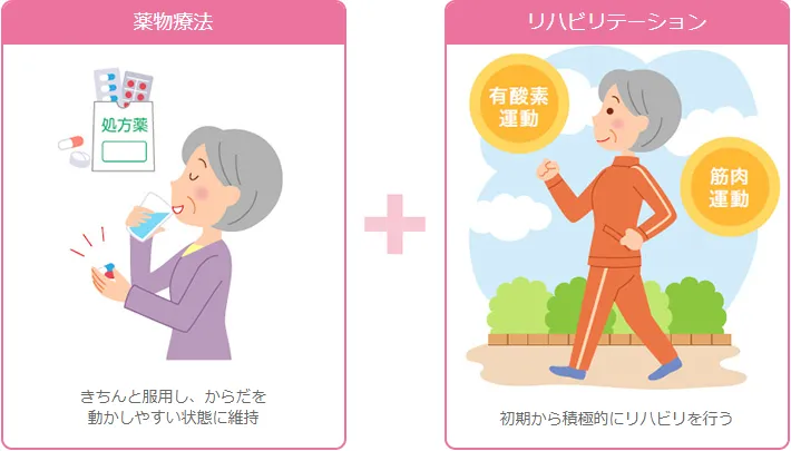 治療は薬物療法とリハビリテーションを中心に