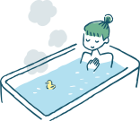 浴槽に肩までつかり、ゆっくりとからだを温めると、全身の疲れが取れてリラックスできます。これは温熱作用によるもので、筋肉や腱の緊張が和らぐことで肩こりなどが楽になります。また、血行が改善されることで老廃物や痛みを発する物質が洗い流され、細胞や組織の新陳代謝が活性化し、からだによい影響がもたらされることが知られています。※1