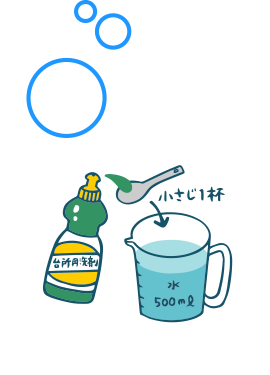 - ※ 目に入ったり、皮膚についたりしないように気を付けましょう。