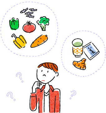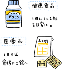 具合が悪いときにサプリメントをのんだことがあるという人もいるでしょう。でもサプリメントを含む健康食品は、健康な人を対象とする食べ物です。だから、野菜や果物などと同じように、誰でも自由に買えますし、薬のように、いつ、どのくらいのまなくてはならない、という決まりもありません。
