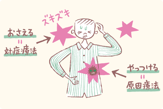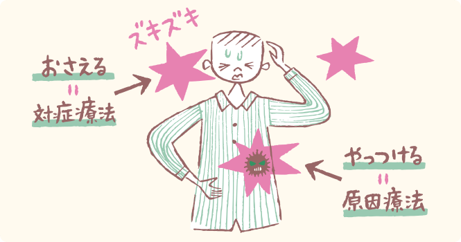 薬をのんで痛みをやわらげるような、症状を軽くする治療法を「対症療法」と呼びます。