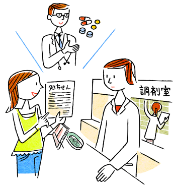 医師は、患者さんのからだを診察し、病気やけがを治すには薬が必要かどうか判断します。薬が必要なときは、患者さんの体質や年齢などを考えて「この薬を、このくらいの量とればいい」と判断します。その情報を書いた「処方せん」と呼ぶ紙、見たことあるのでは? それを薬剤師がいる専門の薬局や病院の窓口で渡すと、薬が処方してもらえます。処方せんが必要な薬なので、「処方薬」と呼びます。「処方せん医薬品」あるいは「医療用医薬品」と呼ぶこともあります。