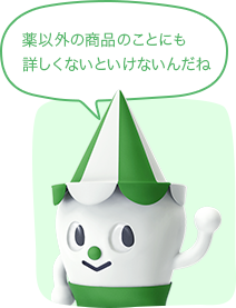 また、ドラッグストアでは氷枕やマスク、ガーゼ、ばんそう膏など、病気になったときやケガの手当てに必要な衛生用品も販売しているので、お客さんの要望に合わせ、これらの商品をすすめることもあります。薬の知識はもちろんのこと、人々の健康維持・増進に役立つ、たくさんの商品情報を身に着けておくことが望まれる仕事です。