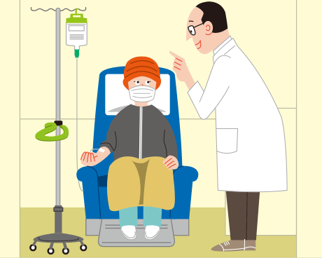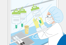 化学療法とは抗がん薬を用いた治療のことで、外来で行う場合も多い。抗がん薬の治療計画書の内容を確認し、抗がん薬の点滴を受ける患者さんに薬の作用や副作用など説明。副作用が出ていれば、副作用を抑える薬の使用を医師に提案する。抗がん薬での治療を行う患者さんが多い病院では、薬剤師の役割はより一層重要になる。