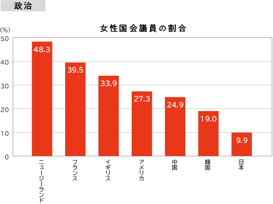日本の女性国会議員の数が他の先進国に比べて圧倒的に少ないね。