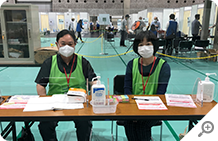 薬剤師資格をもつ社員が新型コロナワクチン大規模接種会場で支援